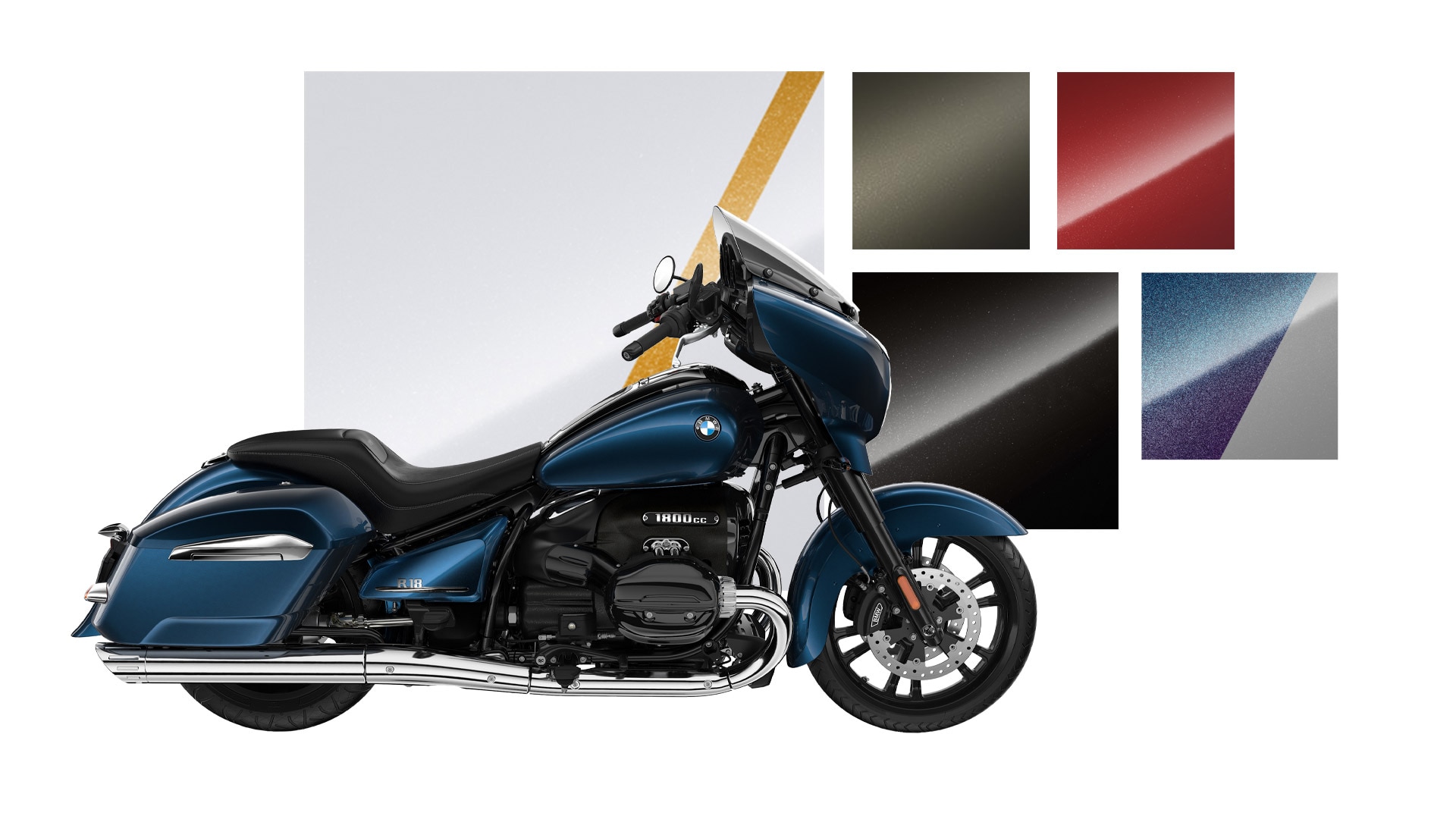 Option 719 Mineral white metallic emphasises the large surfaces of the respective bike and underlines its elegant appearance. Golden highlights accurately emphasise the highlights of the bikes. Harmonious, balanced, attractive: With its Gravity blue metallic paintwork, the bike radiates true grandeur and superiority.