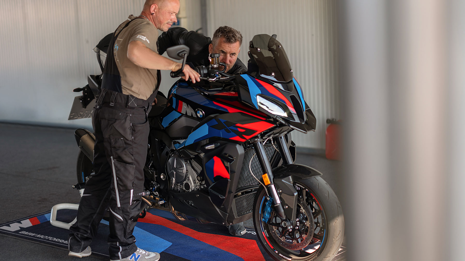 You love a challenge: the optionally available M Competition package is made for you. The M Carbon wheels and numerous M Carbon parts included in the package not only give the bike an ultra-sporty look, they reduce the weight to just 220 kg, thus maximising dynamics and handling. With the M GPS-Laptrigger, you can focus on your fastest times.